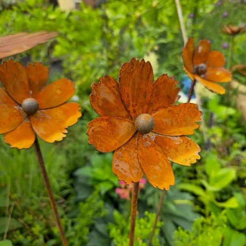 Ez a kézzel készült, rozsdásított fémből készült Pillangóvirág (Cosmos) különleges eleganciát visz bármely kertbe. Finoman kidolgozott formája és természetes, időjárásálló felülete miatt éppolyan látványos télen, mint virágzáskor – így egész évben díszíti a kertet.